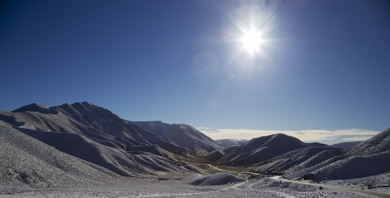 Im August erwarten einen in der alpinen Region der Südinsel in der Regel schöne, klare Wintertage. Das Schmuddelwetter setzt dann im September ein. Man sollte durchaus mit heftigen Schneefällen bis in die Täler rechnen. Gesperrte Strassen und geschlossene Schneedecken sind keine Seltenheit und man sollte moralisch, zeitlich und technisch darauf vorbereitet sein. Schneeketten gehören zur absoluten Standardausrüstung. Auch wir kamen in den Genuss, die Dinger auf einen zwillingsbereiften Camper zu ziehen, was nicht unbedingt ein Kinderspiel ist. Nach 30 Minuten waren die Ketten dann jedoch montiert. So sind wir dann mit 20 km/h für knapp eine Stunde über einen Pass gezuckelt.